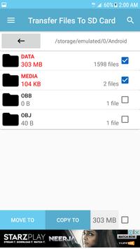 It also gives you the size of each file in the interface to see the space, Files To SD Card Pro is useful for devices with small internal memory and which do not allow saving your files directly to SD card