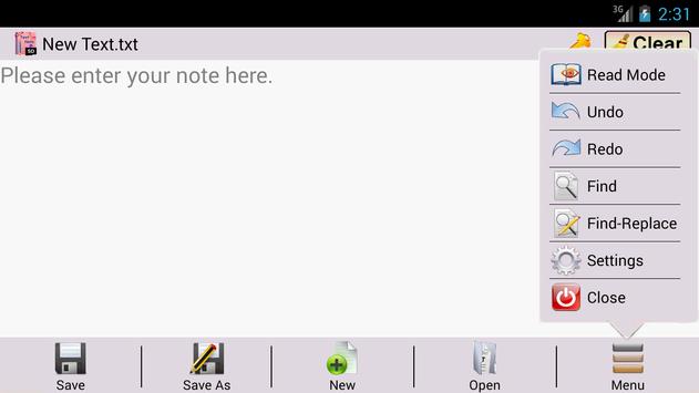 Notes2SD Text Editor is a complete android notepad. It saves your notes/text as txt file. Very useful for tacking regular notes. You can also transfer/copy your notes to PC, laptop or any digital device which supports txt files.