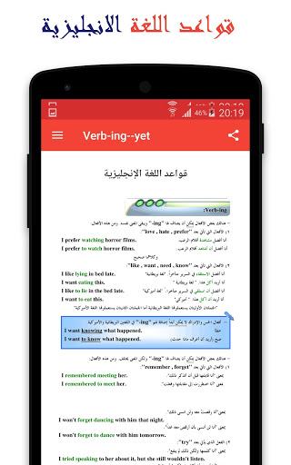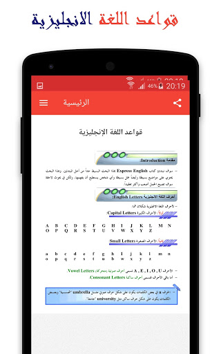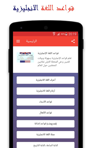 A comprehensive application of all English grammar for all levels from the beginning Urging you to learn the English language I do not think that you will need to search again for English grammar after downloading this English grammar application, you will find in it everything you need and this application contains a set of lessons and rules It also provides you with a simple explanation of each rule and we find among these lessons the English language letters, English language numbers, noun rules, verb rules, rules for addition, the English language sentence, writing the time, writing the date, the difference between the British and American languages, multiple-choice questions and many more Lots.