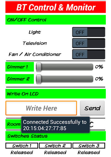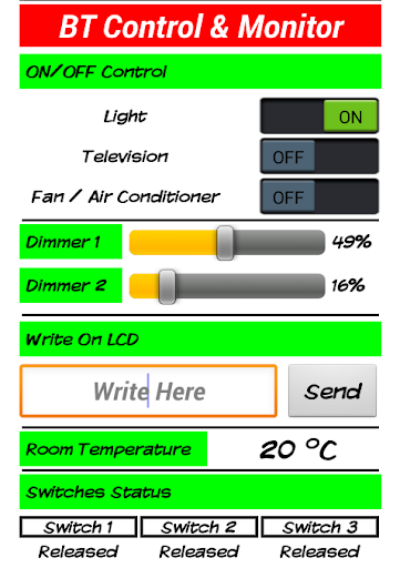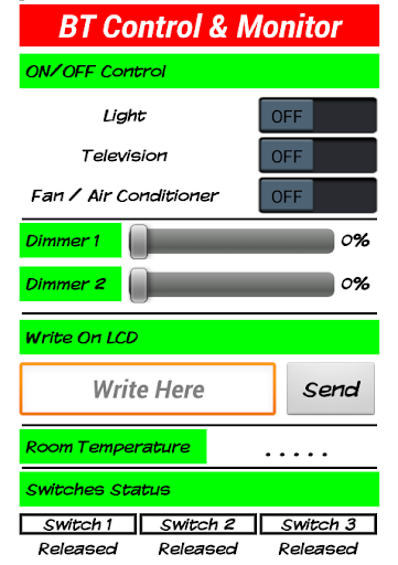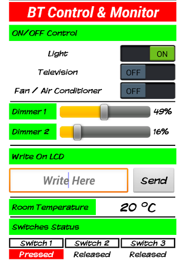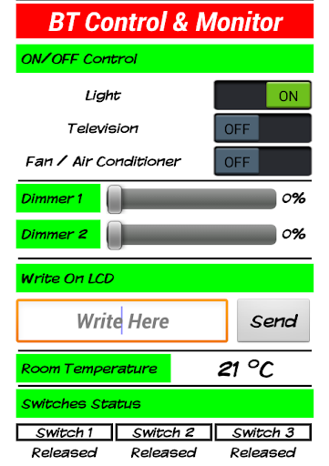 Using this application, Monitoring data also become easy as you can show Temperature on Mobile and Show Switches Status (Pressed or Released)