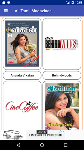>>>> လူကြိုက်များသောတမီလ်မဂ္ဂဇင်းများ (လူကြိုက်အများဆုံးတမီလ်မဂ္ဂဇင်းများ (လူကြိုက်အများဆုံးမဂ္ဂဇင်းတစ်ဝက်) Ananda Vikatan, Chutti Vikatan, Sakthi Vikatan နှင့် Motor Vikatan နှင့် Motor Vikatan တို့အပါအ 0 င် Vikatan မဂ္ဂဇင်းများ။