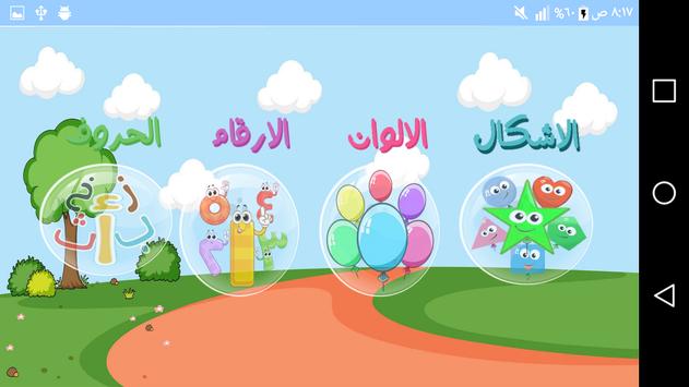 The App contains 14 sections to learn Arabic letters, numbers, colors and shapes with sounds, images and beautiful games