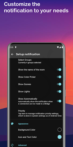 • Philips Hue Lights ကိုလျင်မြန်စွာထိန်းချုပ်ရန်အတွက် Control Notification ကိုသင်၏သော့ခတ်မြင်ကွင်းမှပင်ထိန်းချုပ်ရန်အတွက်သတိပေးချက် - အမိန့်တော်များကိုအလိုအလျောက် - သင်လိုအပ်သည့်အခါသင်၏မျက်နှာပြင်ပေါ်တွင်သာရှိလိမ့်မည်။ မြင်ကွင်းတစ်ခုကိုဖွင့်ပါသို့မဟုတ်အရောင်ပြောင်းပါ။ •တံတားများစွာကိုချိတ်ဆက်ပါ။ • Bridges မျိုးစုံမှအလင်းများပါ 0 င်သည့်မြင်ကွင်းများကိုဖန်တီးပါ။ Philips Hue Lights ကိုထိန်းချုပ်ရန် Philips Hue Lights ကိုထိန်းချုပ်ပါ။ •အခန်းများ, ဇုန်များနှင့်မြင်ကွင်းများကိုစီမံခန့်ခွဲပါ။ Smart Control Notification နှင့်အတူပိုမိုလွယ်ကူချောမွေ့ခြင်းနှင့်မြန်နှုန်း။ Philips Hue Bridge ဖြင့်ဆက်သွယ်မှုတစ်ခုပြုလုပ်နိုင်ပြီးဆက်သွယ်မှုပျောက်ဆုံးသောအခါအလိုအလျောက်ပျောက်ကွယ်သွားလိမ့်မည်။ အလင်းများကိုဖွင့်ပါ, ပိတ်ပါ။ Control Introme မှတိုက်ရိုက်ကြည့်ပါ။