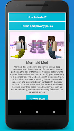 Minecraft အတွက် app mermaid tail mod ကိုဒီဂိမ်းကိုစိတ်ဝင်စားသူများကိုတီထွင်ခဲ့သည်။