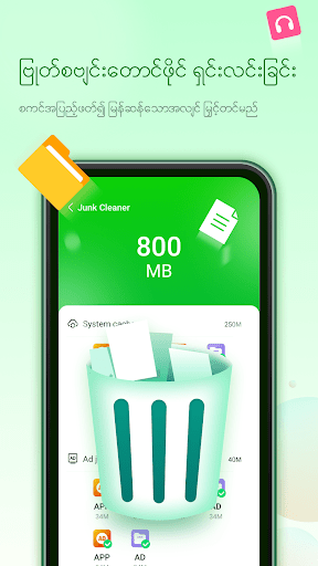 ဗြုတ်စဗျင်းတောင်း သန့်ရှင်းရေး - သင့်ဖုန်းမန်မိုရီတွင်းရှိ ဗြုတ်စဗျင်းတောင်းများ ရှင်းပေးခြင်း၊ နှိုက်နှိုက်ချွတ်ချွတ် သန့်ရှင်းပေးခြင်း၊ ဖုန်းမန်မိုရီ မြှင့်တင်ပေးခြင်း၊ မန်မိုရီအသုံးပြုမှုကို အကောင်းဆုံး ချိန်ညှိပေးခြင်း
