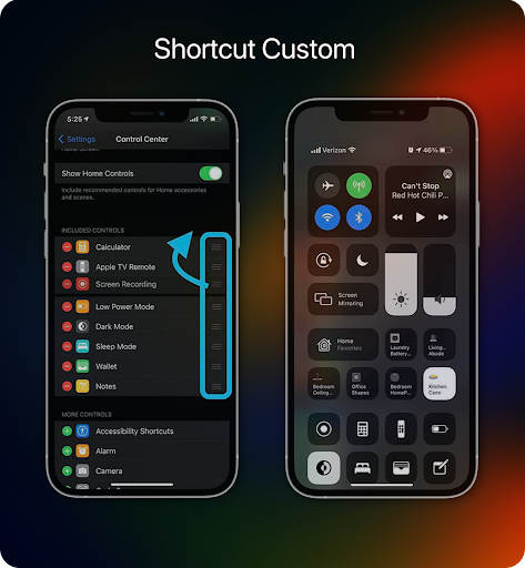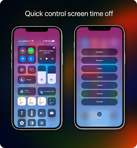 📱Customizable control center with easy access to Wi-Fi Bluetooth, Airplane Mode, and other settings.