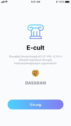 The app is developed within the frames of the E-CULT Cultural Subscription System, which is a common project of the Republic of Armenia Ministry of Education and Science, Republic of Armenia Ministry of Culture and DASARAN Educational Program.