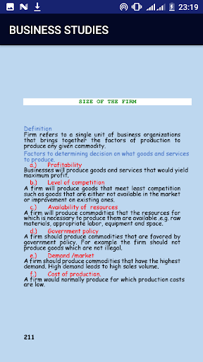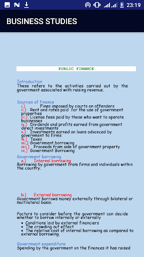 The application provides you with business studies notes for form 3 and form 4.