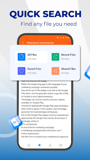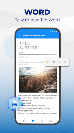 ⭐ File reader for all format: PDF files, DOC, DOCX, XLS, PPT, TXT from internal storage, email, cloud, web and external storage.