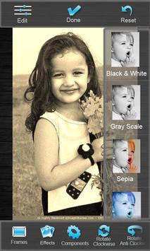 • Add various effects like Sepia, Gray scale, Black and White etc.