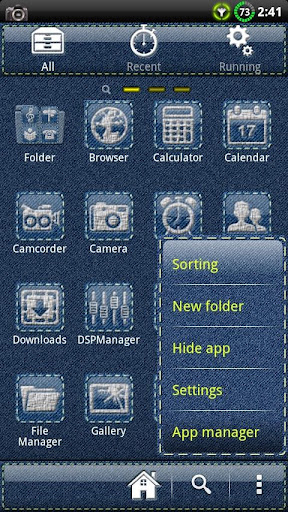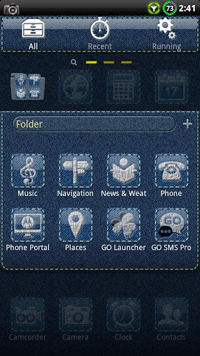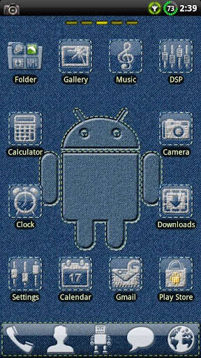 သန့်ရှင်းသောဒီဇိုင်းနှင့်အတူအပြာရောင် Denim ဆောင်ပုဒ်။ Denim နောက်ခံနှင့်ဆိပ်ကမ်း။ အလွန်ကောင်းတဲ့, ရိုးရှင်းပြီး beatifull ။ Denim အရေပြားတွင်ဖောင်းကြွသည့်စိတ်တိုင်းကျ icon များ။ Go Launcher Ex နှင့် Apex Launcher နှင့်လိုက်ဖက်သည်။