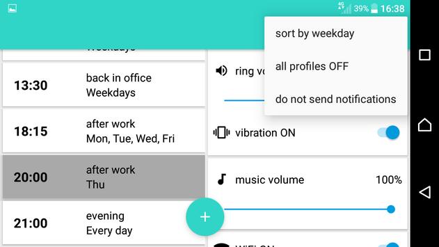 Once configured, the application automatically changes the phone settings. The application only works with parameters that can be legally changed by third-party developers in accordance with the security policy implemented in Android Lollipop and above, so its use is completely safe and does not require "rooting" your device.