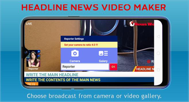 Make your videos look like head line news news videos, in an easy and simple way just with a unique android application. download the application, set your news title, color, channel name or tv according to the color and icon you want and start recording your news video, and share your video work on social media.