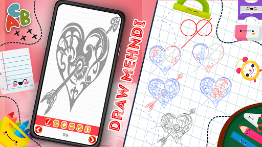 How to Draw Mehndi will teach you how to draw beautiful mehndi designs. How to Draw Henna app contain best collections of mehndi sketches, its very easy to use and learn very quickly.