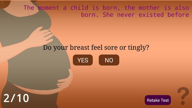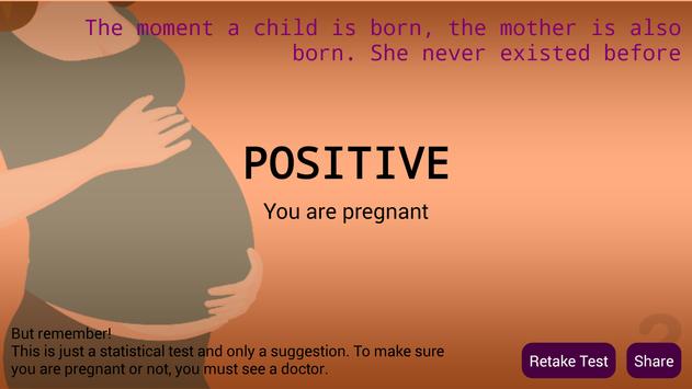 Please note that Pregnancy Test gives you a suggestion by calculation the result of a series of questions. If you need to confirm you have to see a doctor or midwife. Pregnancy Test is very helpful in meantime.