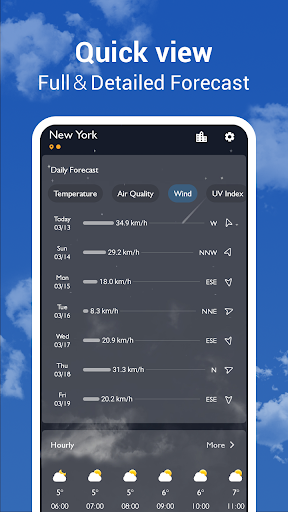 ဤရာသီဥတုခန့်မှန်းချက်သည်သန့်ရှင်း။ လွယ်ကူသောအသုံးပြုနိုင်သောအက်ပလီကေးရှင်းဖြစ်ပြီးကမ္ဘာအနှံ့ရှိမည်သည့်တည်နေရာမဆိုတည်နေရာအတွက်တိကျသောသတင်းအချက်အလက်များကိုတိကျမှန်ကန်သောသတင်းအချက်အလက်ပေးသည်။