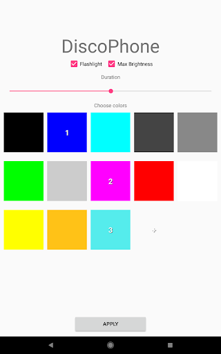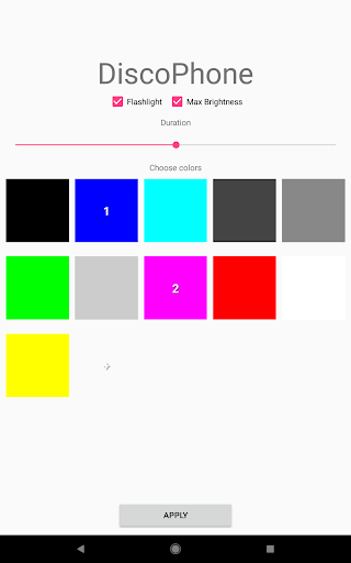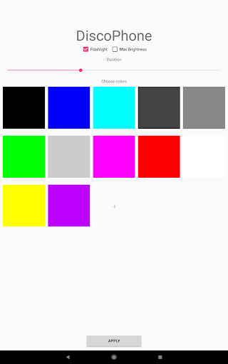 Color your display screen in your favorite color and the party begins. Disco Phone uses the colors that you choose to create an amazing party experience. In addition, you can bring your led camera flashlight to the party too. It pulses super fast with strobe light and combined with your display will fill the room with party atmosphere. The effect is super fun! Use in a dark room for brighter color effects!