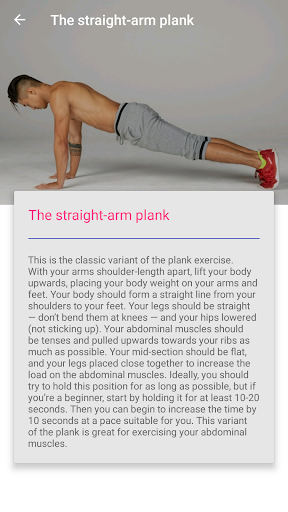 This application brings in 30-day plank challenge. In 30 days, you can do a plank by one or many other ways. Specially, after each day doing plank, you can record a video and share to your friends and challenge them to do plank with you. It will be good to do plank with your friends, right? Do plank, be healthy and be fun.