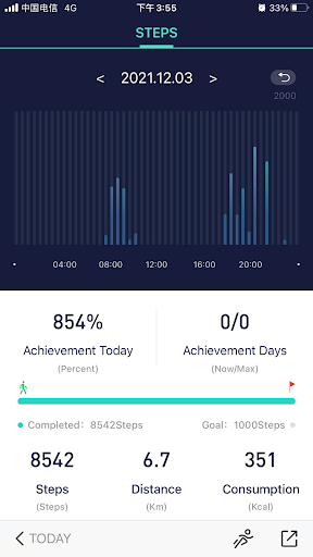- 显示24小时运动数据,以及按周和月的总数据,以及相应的趋势统计图表。