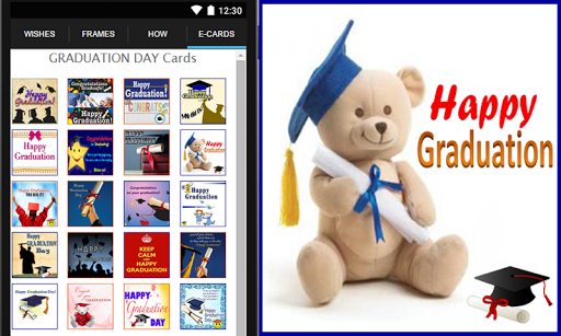 Graduation Day: Cards & Frames allow you to choose from many cards which you can type your messages, or just send the readily e-cards. Or you can also select and use the Graduation Day frames application to capture your selfie, wefie or any photo and send them as your greetings. You can also use the photo editors to frame or edit and design / decorate your existing photos.