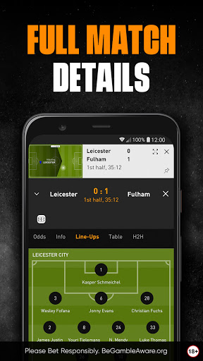 Familiar with the LiveScore app? In LiveScore Bet you get the same full match details for top football fixtures. View stats, team line-ups, league table and H2H details, perfect to go alongside your pre-match betting.