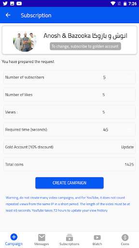 - لا يوفر Mate tube القدرة على شراء المشتركين وعرضهم وإبداء الإعجاب بهم لأنه يتعارض مع السياسة.