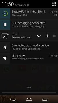 Battery status in notification with color warnings.
