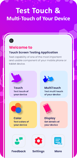 ဤကိရိယာသည်အသုံးပြုသူများကို couched touch ကို screen ဖြင့်ဆွဲယူ။ လက်ချောင်းများကိုရွေ့လျားစေသည်။ နောက်ဆုံးတွင်ဖန်သားပြင်တစ်ခုလုံးကိုအစိမ်းရောင်ဖြင့်မီးမောင်းထိုးပြပါကထိတွေ့မှုစစ်ဆေးမှုကိုဖြတ်သန်းသွားပါကအသုံးပြုသူသည်ထိထိရောက်ရောက်မထိလျှင်ထိုအရာသည်သင်၏မိုဘိုင်း၏ touch panel ၏အစိတ်အပိုင်းတစ်ခုသို့မဟုတ်အစိတ်အပိုင်းကိုဆိုလိုသည် သို့မဟုတ်တက်ဘလက်စက်သည်အသုံးပြုသူလုပ်ဆောင်မှုကိုလုပ်ဆောင်ခြင်းသို့မဟုတ်တုန့်ပြန်ခြင်းမရှိပါ။