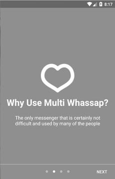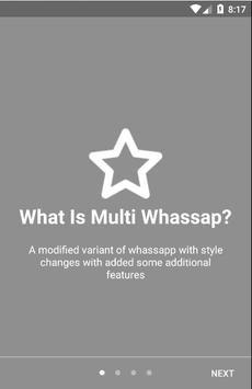 Multi Whassapp guide is an app to help to teach you install multiple Whassapp applications at same time on android device. Control another WhassApp with the same device!!! Easy to switch account. When you change starting with one record then onto the next record, no SMS confirmation, you can change specifically to open.