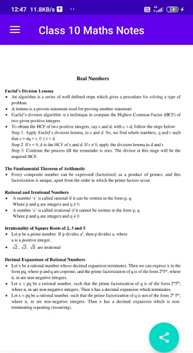 In this app you will find NCERT Notes for class 10 Maths.
