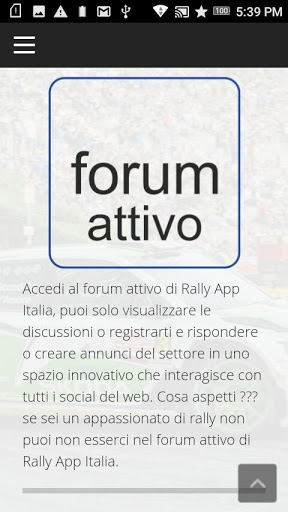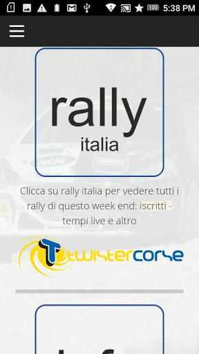 RALLY APP è l'applicazione ufficiale delle gare automobilistiche aderenti al servizio di pubblicazione e divulgazione delle comunicazioni ufficiali delle gare da rally. Scaricando l'applicazione gratuita puoi accedere ai servizi che Rally App Italia mette a disposizione di chi aderirà al servizio tramite una iscrizione gratuita. Per tutelare la privacy l'iscrizione viene cancellata al termine della gara. Quindi per ogni rally bisogna iscriversi al servizio compilanado un form on line molto semplice e intuitivo.
