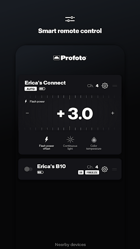 * မှတ်စု: Profoto အက်ပလီကေးရှင်းသည် Profoto Connect, B10, B10 ပေါင်းသို့မဟုတ် A10 နှင့်သဟဇာတဖြစ်သည်။ယခုအချိန်တွင်ဤအက်ပ်သည်အဝေးထိန်းခလုတ်နှင့်အတူအလင်းချိန်ညှိချက်များကိုသာထိန်းချုပ်နိုင်သည်။