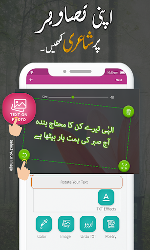 သငျသညျ Social Media တွင် Urdu ပို့စ်များအပေါ်အယူအခြားယူဒီမီဒီယာအပေါ်တွင် Urdu ရေးသားချက်များကိုတင်လိုပါကဓာတ်ပုံအက်ပ်တွင် URDU စာသား၏အကူအညီဖြင့် Urdu Posts အမျိုးမျိုးကိုဖန်တီးနိုင်ပါလိမ့်မည်။သင်ကဲ့သို့သော Urdu နဖူးစည်းစာတန်းများ၏ Settings အမျိုးအစားများကိုသင်တွေ့လိမ့်မည်။ သင့်ရဲ့မိုဘိုင်းသို့မဟုတ်စက်ပစ္စည်းပြခန်းမှဓာတ်ပုံများနှင့် URD အနုပညာမှသင်လုပ်နိုင်သောစိတ်ကြိုက် undu စာသားကိုသင်ထည့်သွင်းနိုင်သည့်အလွတ်တစ်ခုရှာတွေ့လိမ့်မည်။Urdu ကီးဘုတ်ဖြင့်သင်ဘာလုပ်နိုင်သည်ကိုသင်လုပ်နိုင်သည်နှင့် Urdu စာသားကိုဓာတ်ပုံပေါ်တွင်ပုံဖော်။ အချည်းနှီးသောစာမျက်နှာပေါ်တွင်သာညှိနိုင်ပြီးပြခန်းသို့အလွယ်တကူသိမ်းနိုင်သည်။Urdu Shairy သည် Urdu စာသားတွင်ယူရေဆီအမျိုးအစားများကိုယူရေဆီစာသားတွင်ထည့်သွင်းထားပါသည်။ သင်မိတ္တူကို နှိပ်. သင်မည်သည့်နေရာတွင်မဆိုသင် post လုပ်လိုသည့်နေရာကိုသာဖိအားပေးနိုင်သည်။Urdu ကဗျာနှင့်အူဒူဘာသာစကား၏ Readu Prother ၏ Urdu Ghazals များကိုတွေ့လိမ့်မည်။image ပေါ်ရှိ Urdu စာသား၏ interface သည်အလွန်ရိုးရှင်းပြီးအလွန်ရိုးရှင်းပြီးအလွန်ရိုးရှင်းပြီးလူတစ် ဦး အမျိုးအစားတိုင်းသည်၎င်းကိုလက်ချောင်းထိပ်တစ်ခုတည်း၏အကူအညီဖြင့်အလွယ်တကူအသုံးပြုနိုင်သည်။ Urdu Keyboard ၏အကူအညီဖြင့်သင်အရံအနုပညာကိုပြုလုပ်သည့်အခါDone Button ကိုနှိပ်ပါ။ ၎င်းသည်အဓိက edit page သို့သွားလိမ့်မည်။ ထို့ကြောင့်အခြားအစိုင်အခဲနောက်ခံများ၌ဤအပင်ကိုပုံဖော်။ လှည့်နိုင်သည်။ဒီတိကျတဲ့ Urdu စာသားကိုဖျက်ပစ်ပါ။ Save icons ကိုနှိပ်ခြင်းအားဖြင့်၎င်းကိုအလွယ်တကူသိမ်းနိုင်သည်ကိုသင်အလွယ်တကူသိမ်းနိုင်သည်။ ၎င်းကိုသင်၏ဖုန်းပြခန်းတွင် Urdu Art အဖြစ်အလိုအလျောက်သိမ်းဆည်းလိမ့်မည်။