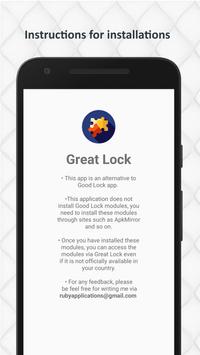 • GreatLock App is makes you free about country restrictions about GoodLock also Samsung GoodLock modules can be downloaded by third party websites.