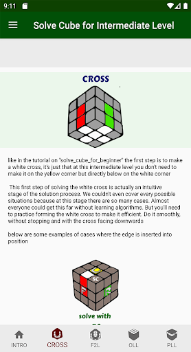 Solve Cube for Intermediate Level app will guide you step by step to solve cube 3x3x3 and use of algorithms to solve cube,You can solve the cube in any scramble and by using this Solve Cube for Intermediate Level app you will do it without any difficult,If you practice with consistent, You will become a speedsolver,Solve Cube for Intermediate Level app use CFOP Method.