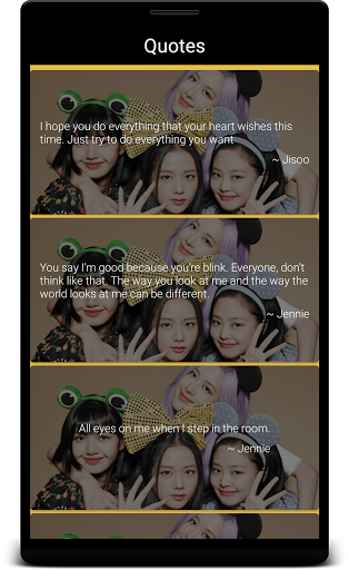 Are you fan of Blackpink[블랙핑크]? The this is app for you. A collection of the Blackpink quotes and backgrounds available for download for free. With Blackpink Quotes Widgets help you to set your favorite character's quote with photo on home screen. We hope you enjoy our growing collection of HD images to use as a background of widgets for your android smartphone.