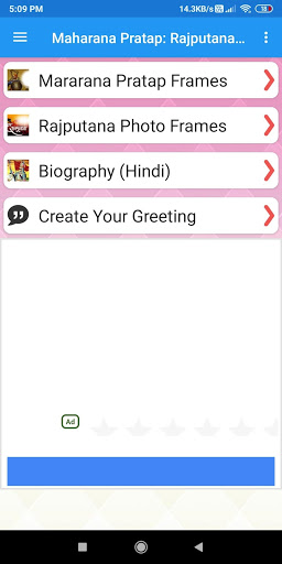 Maharana Praatap မိုဘိုင်း application သည်သင့်အားနောက်ဆုံးလှပသောဓာတ်ပုံဘောင်များစုဆောင်းခြင်းကိုပေးထားသည်။ ကျွန်ုပ်တို့သည်သင့်အားနောက်ဆုံးပေါ်အဆင့်မြှင့်တင်ရန်အချိန်နှင့်အမျှကောင်းမွန်သောနှင့်မွမ်းမံထားသောစုဆောင်းမှုနှင့်သင်၏အကောင်းဆုံး app အတွေ့အကြုံကိုပေးရန်သင်ကတ်အသစ်များ / မက်ဆေ့ခ်ျအသစ်များထည့်သွင်းရန်ဖြစ်သည်။