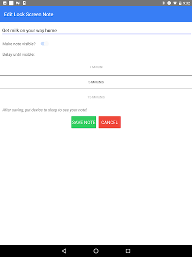 Add a quick note to your phone's lock screen in a snap! Simply enter the note and put your device to sleep - the note will then show up on your lock screen for easy access (without you having to log back in to your device).