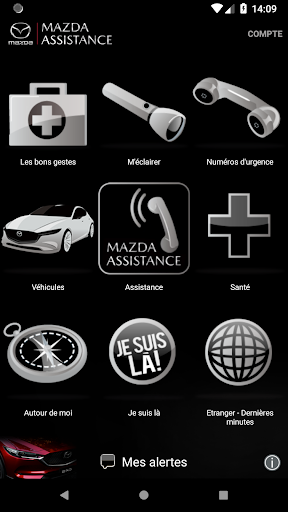 Mazda Assistance Application သည်တစ်ပတ်လျှင် 24 နာရီ, တစ်ပတ်လျှင် 7 ရက်တစ်ပတ်လျှင် 7 ရက်အတွင်းအသုံးပြုနိုင်ရန်ခွင့်ပြုသည်။ ˗