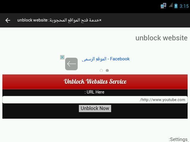 تطبيق فتح المواقع المحجوبة يقوم بفتح المواقع المحجوبة بكل سرعة و سهولة فقط عليك وضع الرابط و الضغط على "فك الحظر"