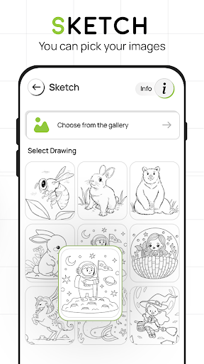 သင်၏အနုပညာကိုအလွယ်တကူထည့်သွင်းရန် Smart DagningSting Tool ကိုအလွယ်တကူကြည့်ရှုရန်လွယ်ကူသောနည်းလမ်း - ဤအက်ပ်ကို အသုံးပြု. မည်သည့်ပုံကြမ်းကိုမဆိုဆွဲယူရန်လွယ်ကူသောနည်းလမ်းတစ်ခုသို့မဟုတ် app collection မှရွေးချယ်ပါပွင့်လင်းမြင်သာသောပုံရိပ်နှင့်ကင်မရာဖွင့်ခြင်းနှင့်ကင်မရာပါ 0 င်သည့်ဓာတ်ပုံကိုရွေးချယ်ပြီးသင်၏ Sketchbook ပေါ်ရှိပုံရိပ်ကိုရွေးချယ်ပါ။- ဤအက်ပလီကေးရှင်းကို အသုံးပြု. အနုပညာကို ဖန်တီး. လေ့လာရန်လွယ်ကူသည် - ဆွဲဆောင်မှုရှိသောအသုံးပြုသူ interface ဒီဇိုင်း