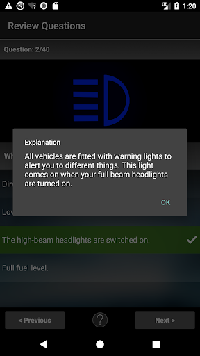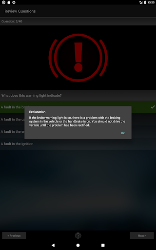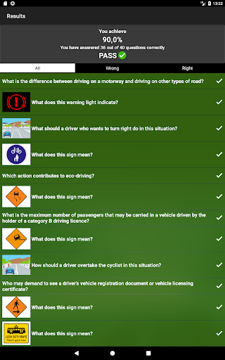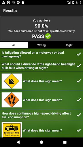 * Mock Mock သီအိုရီ စမ်းသပ်မှု - တရားဝင်စမ်းသပ်မှုအဖြစ်တူညီသောအခြေအနေများအောက်တွင် simulation လုပ်ဆောင်ပါ။ သင်စမ်းသပ်မှုပြီးဆုံးသွားသောအခါသင်၏ရမှတ်ကိုသင်တွေ့ပြီးမေးခွန်းများအားလုံးကိုပြန်လည်သုံးသပ်လိမ့်မည်။ နောက်တစ်ကြိမ်အတွက်မှန်ကန်သောအဖြေကိုမှတ်မိစေရန်သင်အကူအညီတောင်းခံရန်မေးခွန်းတစ်ခုစီကိုကြည့်ပါ။