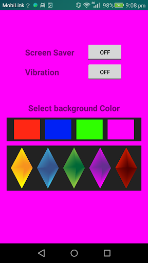 Hold diamond to see animations on lock screen app and this app have different type of diamonds in different colors. Choose diamonds of your choice to show on lock screen with vibration or without vibration.