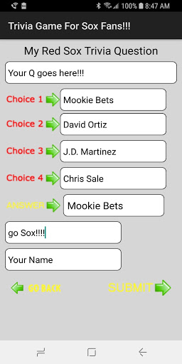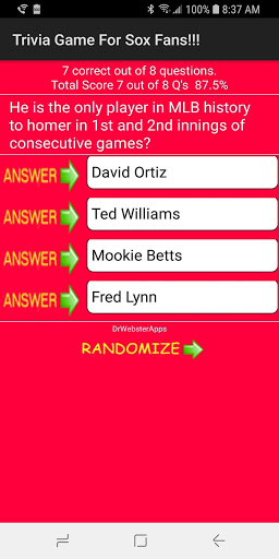 အခြား storched frotherise ၏သမိုင်းနှင့်သမိုင်းကြောင်းနှင့်ပတ်သက်သောသင်၏ဗဟုသုတများကိုစစ်ဆေးသောဤပျော်စရာကောင်းသော, သင်၏ကိုယ်ပိုင် Sox Trivia မေးခွန်းကိုသင်လည်းပေးပို့နိုင်သည်။ အကယ်. သင်လိုချင်ပါကဤအက်ပ်ကိုသင့်ဖုန်းတွင်ထားရှိရန်၎င်းကိုသင်၏အမည်ဖြင့်ထားမည်။ ၎င်းသည်လာမည့်နှစ်၏အချိန်ဇယားအတိုင်းအလိုအလျောက်မွမ်းမံပါလိမ့်မည်။ ၎င်းကို update လုပ်ထားရန်အလိုအလျောက်အသစ်ပြောင်းခြင်းများကိုစစ်ဆေးရန်သေချာပါသည်။ မည်သည့်ဂိမ်းကိုမဆိုအသာပုတ်ပါကသင်ရမှတ်များ, မီးမောင်းထိုးပြခြင်း, ဘလော့များနှင့်အသေးစိတ်အချက်အလက်များအတွက် Red Sox ဝက်ဘ်ဆိုက်သို့ခေါ်ဆောင်သွားသည်။ သတိပြုပါ, မိုးရေများသို့မဟုတ်နှစ်ဆခေါင်းစီးမိတ်ကပ်များရှိပါက၎င်းတို့အားအချိန်ဇယားတွင်ချက်ချင်းမရှိကြပါ။ ထိုနေ့တွင်မည်သည့်ဂိမ်းကိုမဆိုအသာပုတ်။ ဝက်ဘ်ဆိုက်ကိုစစ်ဆေးပါ။ ဤအက်ပလီကေးရှင်းတွင် MLB နှင့်တရားဝင်ဆက်နွယ်မှုမရှိပါ။