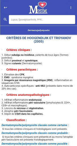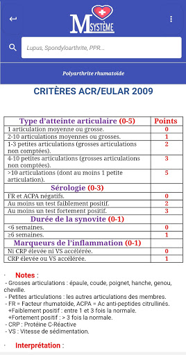 1 - Il s’agit d’une application gratuite, permettant une consultation rapide des critères de classification et de diagnostic des maladies de système.