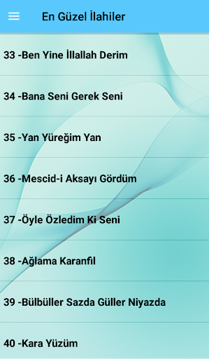 "35 -yan နှလုံးသားဘက်", "37 - ငါနိမိတ်လက္ခဏာကိုမြင်တယ်" , 38 - 39 - 39 -bülüler Sazda တွင် Niyazda တွင်နှင်းဆီပန်း "41 -" 41 -Sored အဝါရောင်ပန်းပွင့် "," 42 -yağmur ", "43 -mesnevi သင်တန်း", "44 -mesnevi သင်တန်း", "45 -mesnevi သင်တန်း",