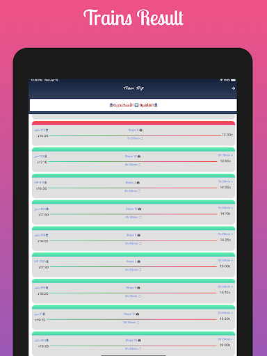လေ့ကျင့်မှုများကိုရှာဖွေရန်ခွင့်ပြုသည့် application တစ်ခုသည်အီဂျစ်နိုင်ငံရှိဘူတာပေါင်း 500 ကျော်မှရထားဘူတာများအကြားရက်စွဲများပြုလုပ်သည်။