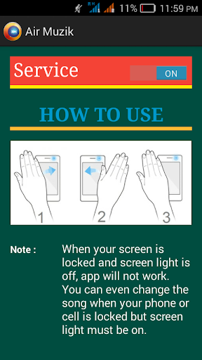 Air Muzik - You can enjoy songs in music player. With the help of this app you can change the song with out touching the cell phone.