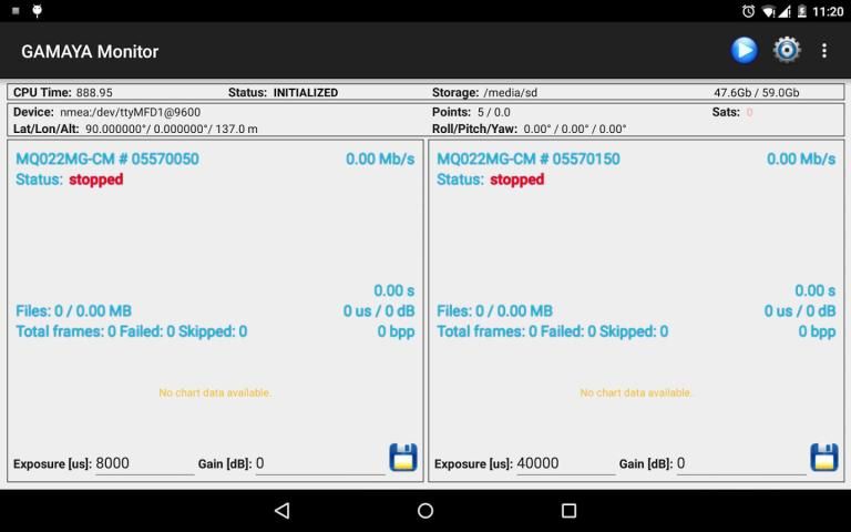 GAMAYA monitor allows you to set and change the modes of the camera system, follow the process of the camera working, receive status messages and previews.