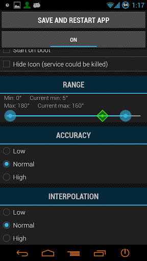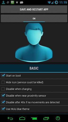 When you are using your device, you hold it in a specific position. Keep Screen ON let you select the range of activation of the screen brightness based on the device inclination (more smart ways are coming soon).